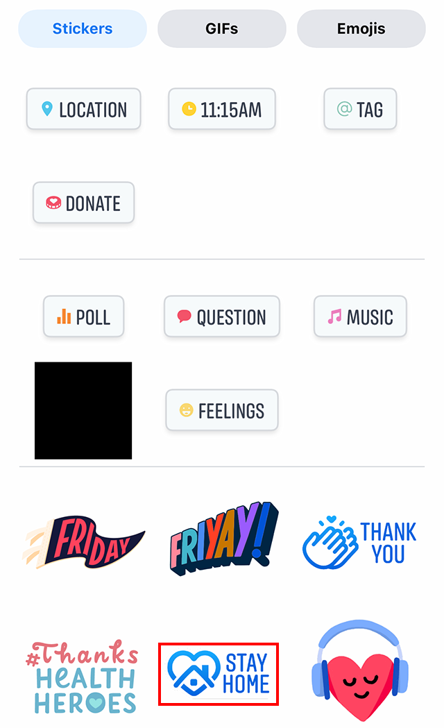 Step 2: Tap the “Stay Home” sticker.