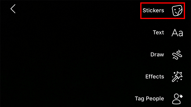Step 1: Once you’ve taken or imported a photo or video into Stories, tap the “Stickers” icon in the top-right corner of the screen.