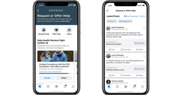 A Facebook spokesperson offered examples such as delivering groceries to elderly neighbors or volunteering to distribute food via local food banks, adding, “For this experience, we really looked to build on existing tools within Crisis Response to make it as easy as possible for people to take action and get help with urgent needs.”