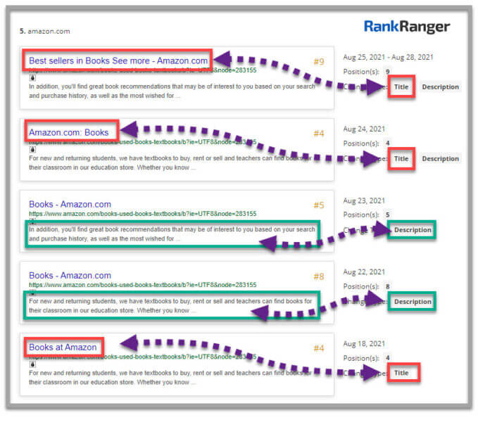 This enables SEOs to cross-reference rankings changes with title changes, although Google has said that title changes do not affect rankings.