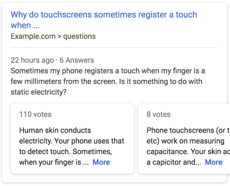 Google announced it is expanding support for rich results within Question & Answer pages on the web. This is something Google tested a year ago and is now more widely expanding according to Google.