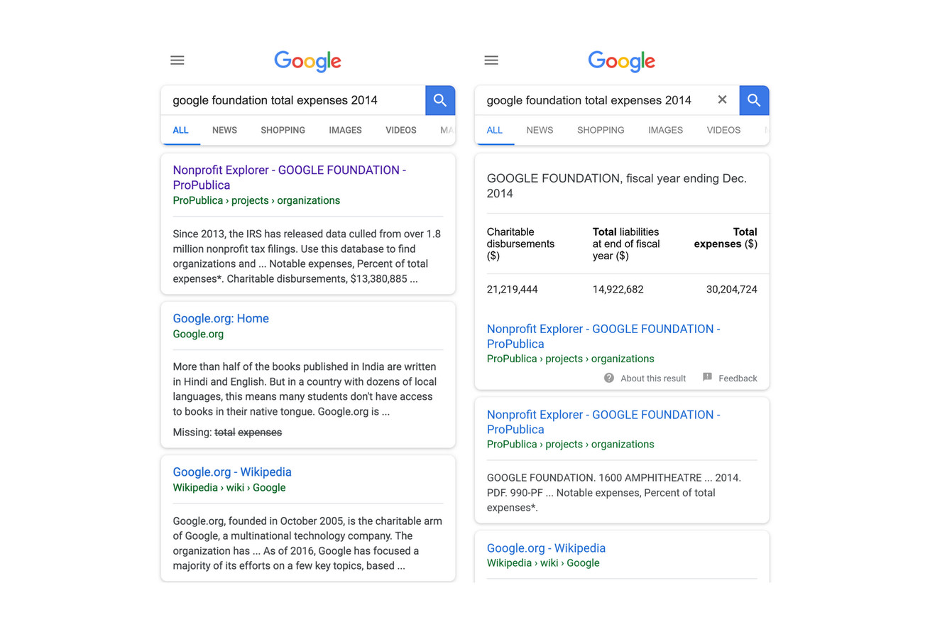 “Data journalism takes many forms, and it’s not always clear from the headline that there is potentially useful data within that document or story,” Google News Lab’s Simon Rogers wrote in today’s blog post. “It isn’t always easy for Google Search to detect and understand tables of data to surface the most relevant…