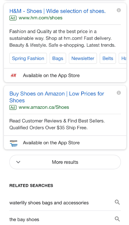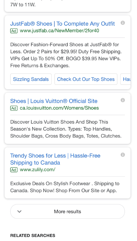 When you get to the bottom, you see another button to click for more results, with the 3 ads above it.
