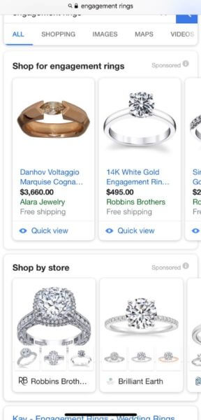 The screen shot below shows the test running on mobile on a search for “engagement rings.”