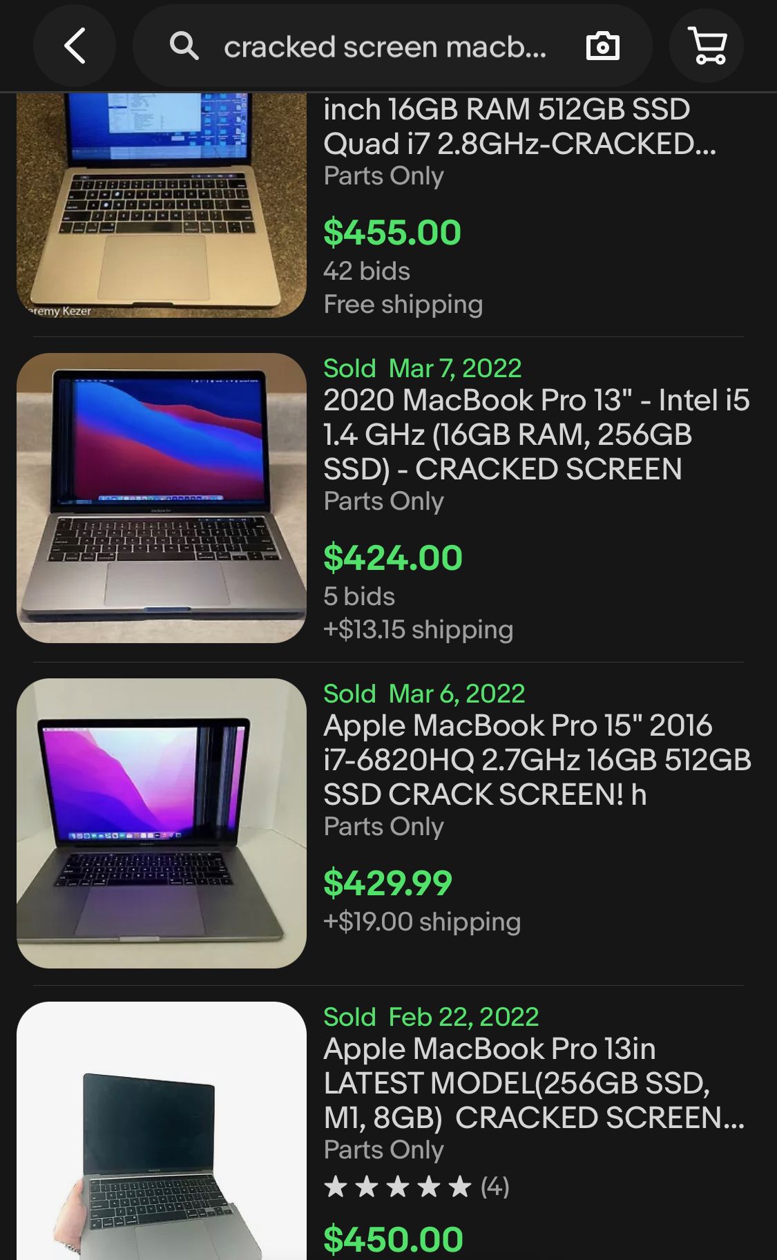 But if your cousin isn’t as forgiving as mine, perhaps the eBay route is your best bet. I found recently sold listings for broken Touch Bar MacBook Pros going for around $400, either because they had cracked screens or a problem with the flexible display ribbon cables. But, hey, who needs flex cables anyway when we’re dropping dead weight?