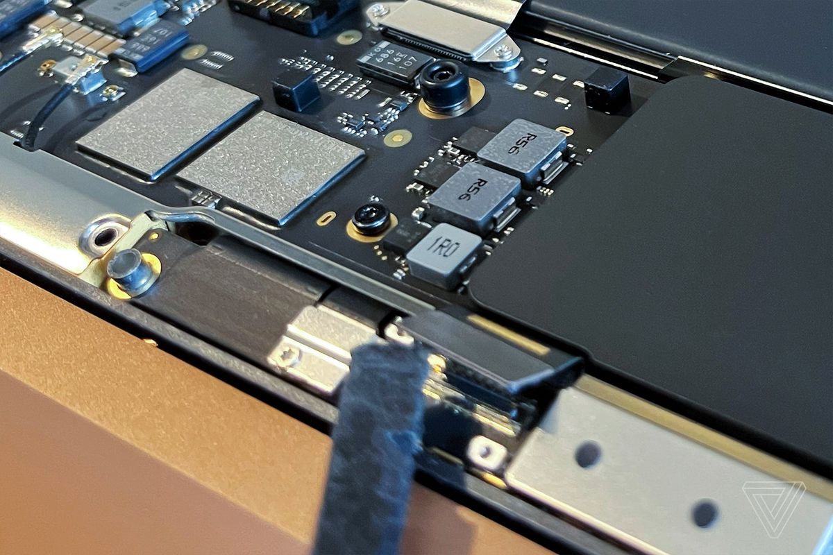 The third step is to disconnect and remove anything that comes in the way of getting to the display hinge screws, including internal video connectors, antenna connectors, and — in the case of my M1 MacBook Air — even the antennas themselves. Don’t worry — after the display is removed, you can put the antenna back and still keep Wi-Fi connectivity for your slabtop, unlike my cousin’s machine. Removing all these parts can be tricky, so you might want to follow an online guide for your particular model.