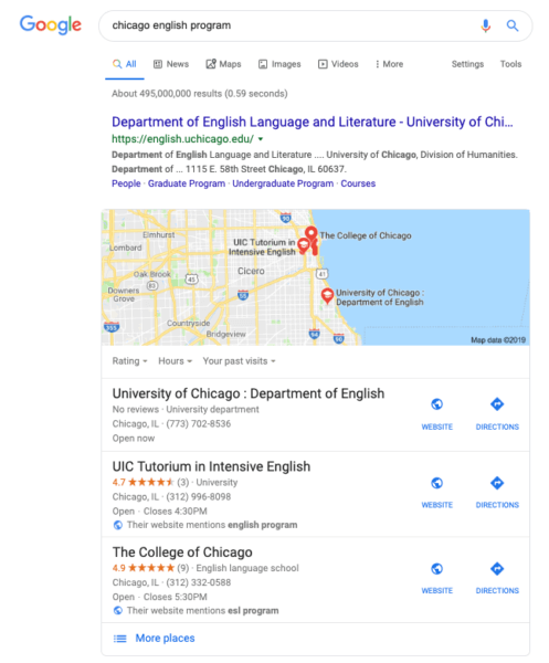Review local SEO ranking factors and make sure your university website is optimized to appear in the three pack as much as possible.