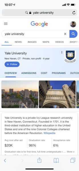 The biggest issue in the new face of search is control over your own brand information. As Google has realigned its SERPs to better match the growth in voice search, featured snippets have become more important and more prominent than ever, and there is no guarantee that snippets about your university will come from your website.