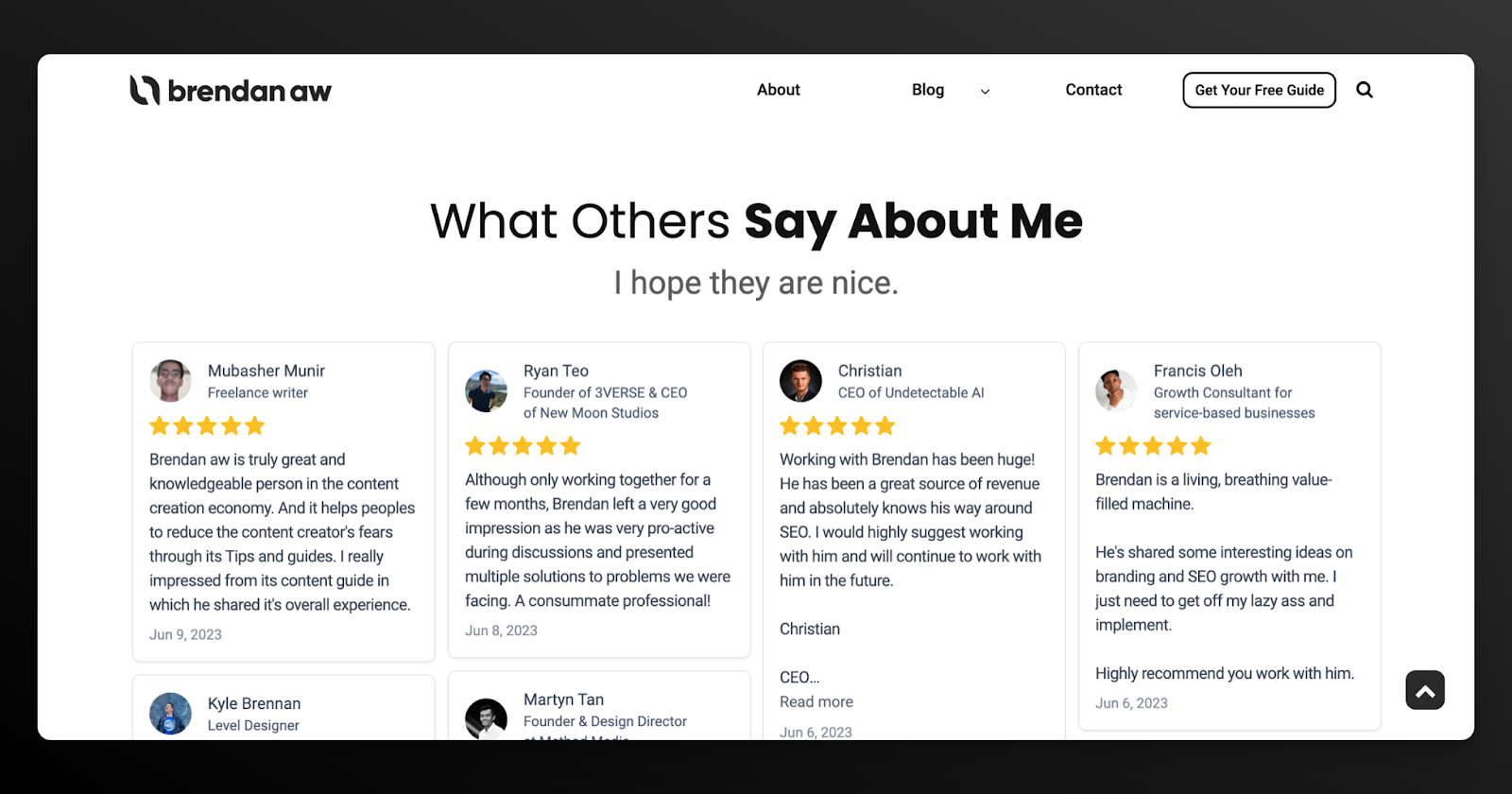 I started gathering testimonials from founders, former colleagues, other creators, and even freelancers to show social proof on my website and build more credibility using Senja.