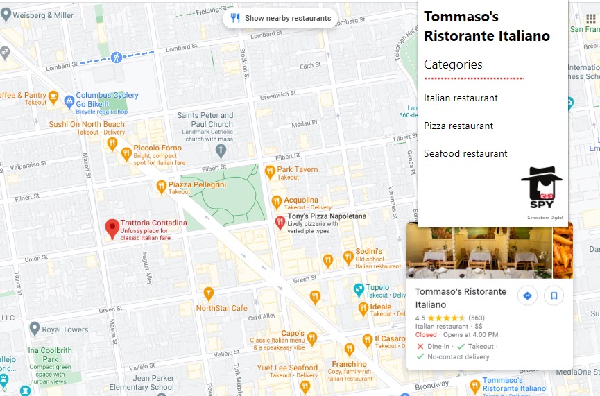 Here’s a screenshot of the market an Internet searcher in the North Beach district of San Francisco might see if they are looking for “pizza near me”:
