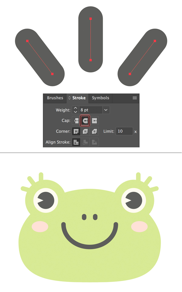 Keeping the mouth shape selected, open the Stroke panel (Window > Stroke) and set the Weight to 8 pt, Cap to Round Cap. This way we make the stroke thicker.