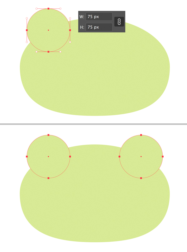 Let’s start from the head of our cute frog vector. Take the Ellipse Tool (L) and make a 260 x 170 px light-green shape.