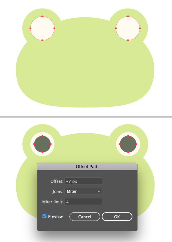 Select the white circles and go to Offset Path again. This time set the offset value to -7 px. Fill the created shapes with dark color for the iris.