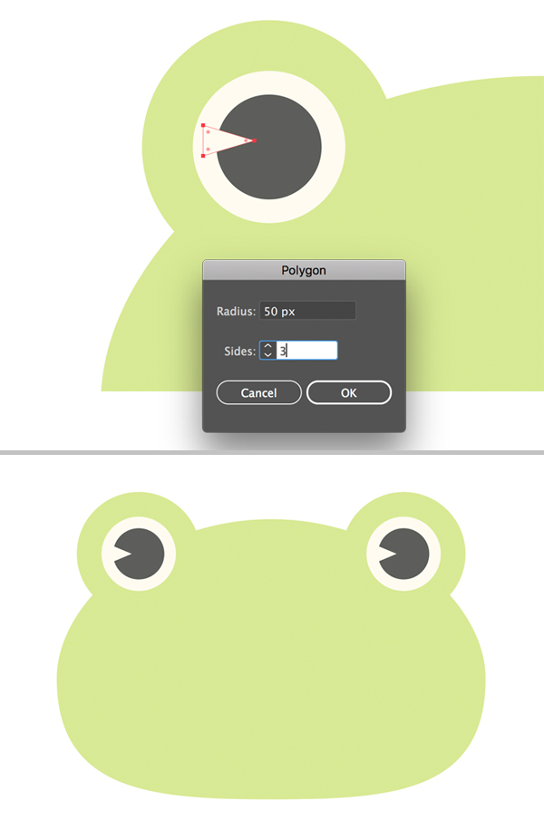 Let’s add a triangular highlight in the eye. First of all, switch to the Polygon Tool (you can find it in the same drop-down menu as the Rectangle Tool). Double-click the Polygon Tool in the Tools panel and set the Sides value to 3. Create a small white triangle and place it on top of the eye as shown in the image.