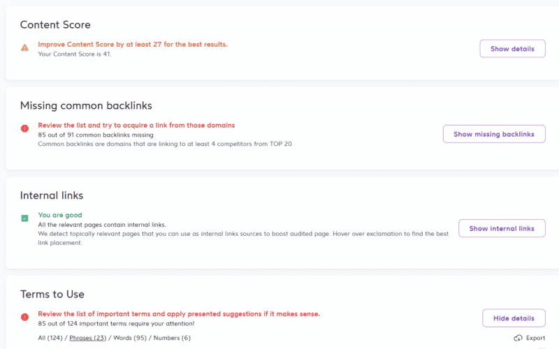 At this stage, you should have optimized your website for a strong page experience, created lots of entity-driven content, and gained inbound links providing you with rankings and traffic.