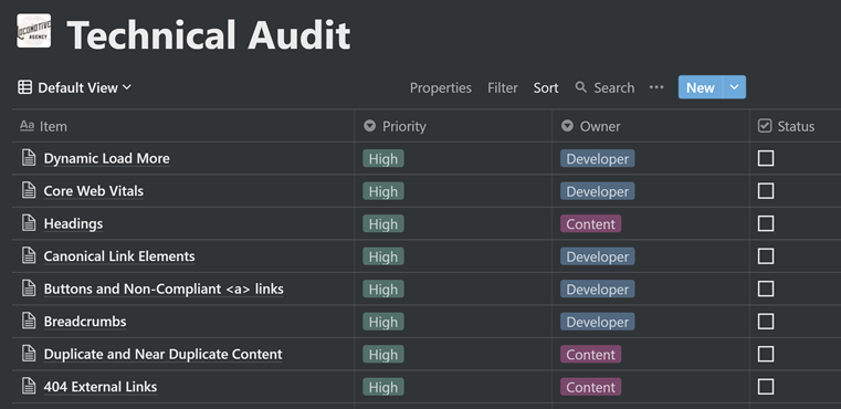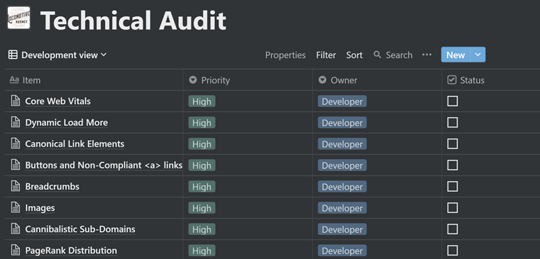 To help prioritize issues in our tech audits, we like using a tool called Notion.