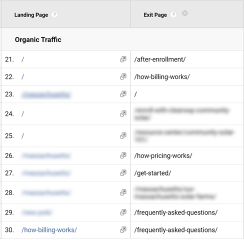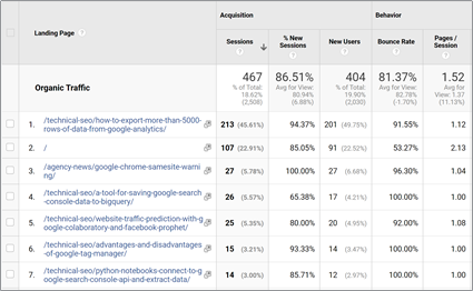 In the example above, Google has sent traffic to two separate versions of the same webpage based on the site’s usage of a sid parameter in internal links. This makes our lives harder as marketers because instead of seeing this page has 880 user sessions and is an important page, the data is fragmented across multiple URIs.