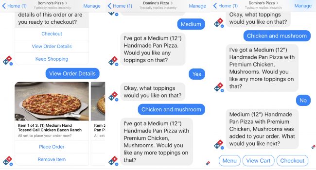 Many companies are already taking advantage: For instance, Domino’s Pizza launched its own Facebook Messenger chatbot whereby customers can order a pizza straight from the social media platform:
