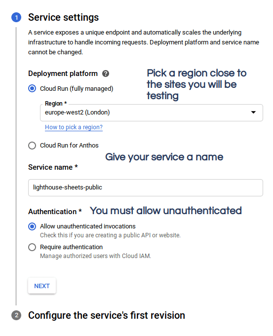 - A Google Cloud Run application that will do the complicated stuff (in this case run a Lighthouse test) and that will respond to HTTP requests.