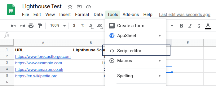 How to show Lighthouse Scores in Google Sheets with a custom function