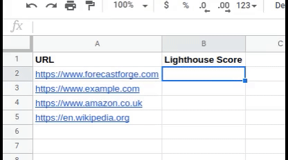 I use a very similar process for my Google Sheets addon Forecast Forge, but instead of returning a Lighthouse score it returns a machine learning powered forecast for whatever numbers you put into it.