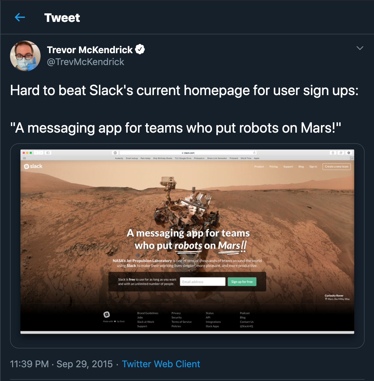 — In 2015, Slack (the online collaboration hub) created a huge PR campaign out of a single banner! The Slack homepage banner said that .