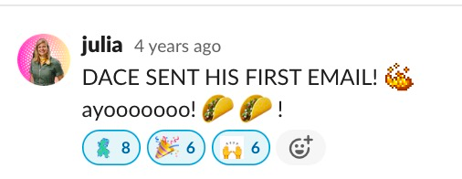 To support new team members during their first Advocacy Day, we also held celebrations in Slack when someone shipped their first reply to a customer and shared meaningful learnings and interactions throughout the day.