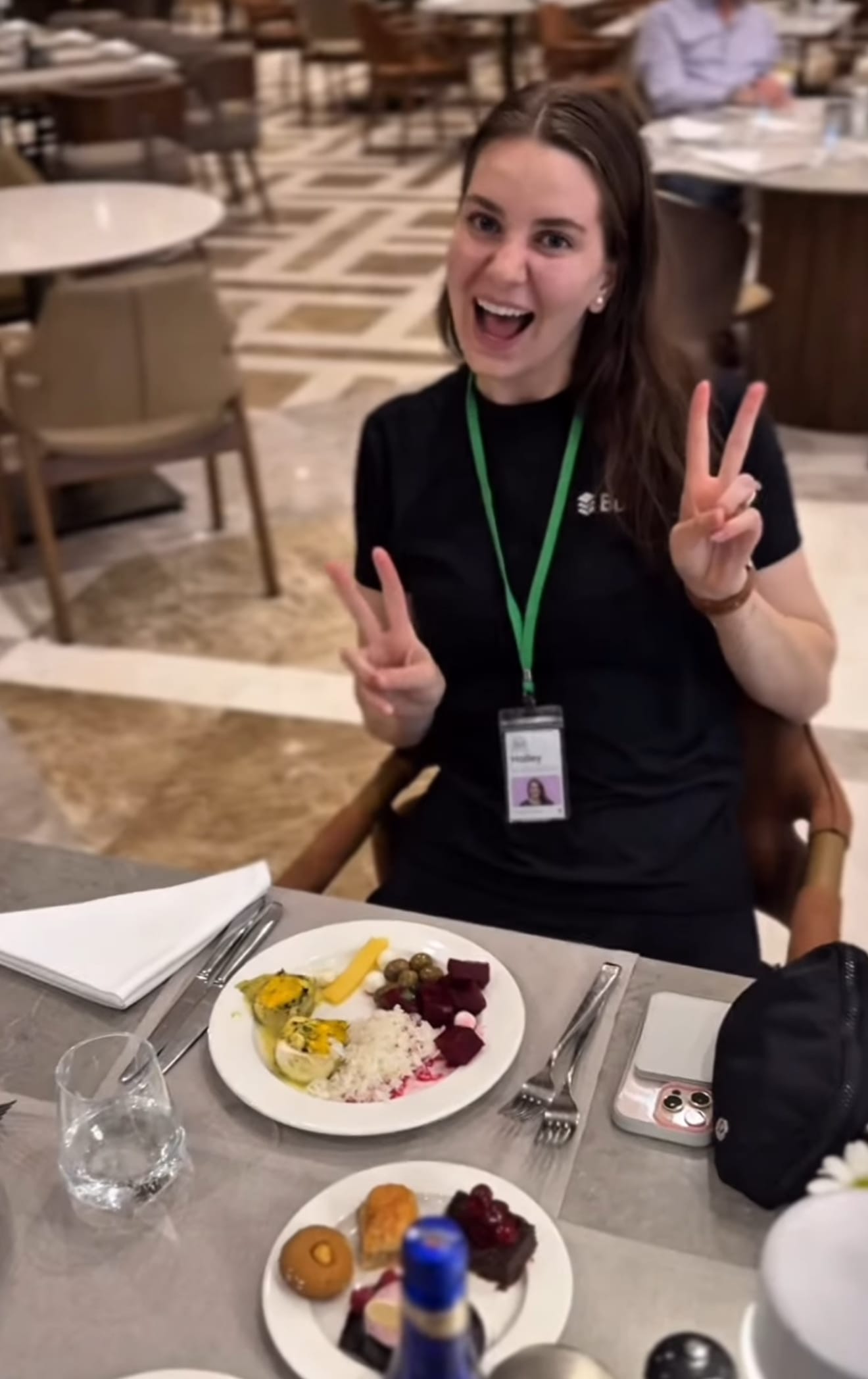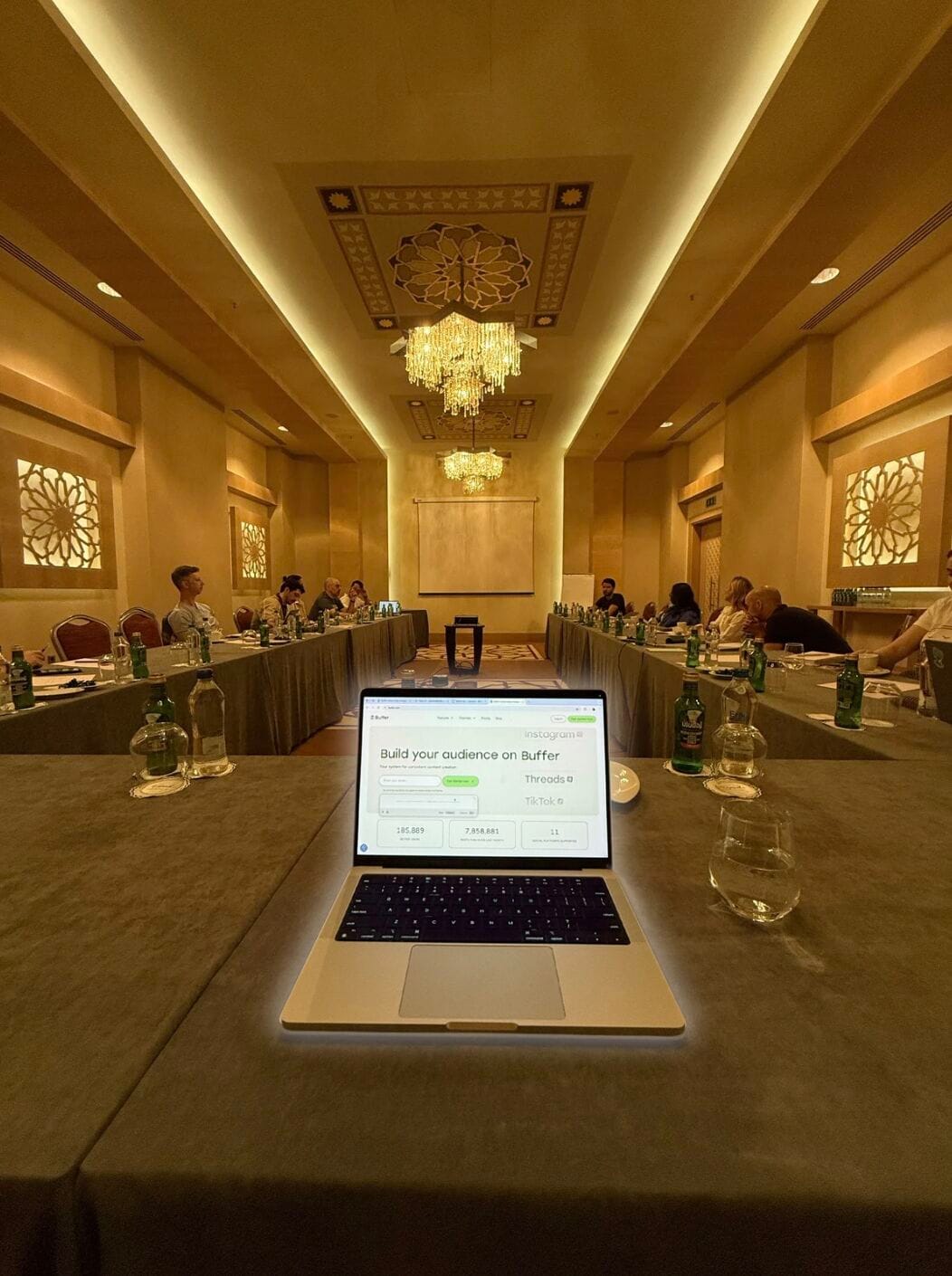 It was late, and after a few rounds of hellos, I picked up my Buffer badge (tears in my eyes seeing my name beside Buffer’s), dropped my luggage in a palace-like room, and headed downstairs for a light dinner with Hailley and Hamish.