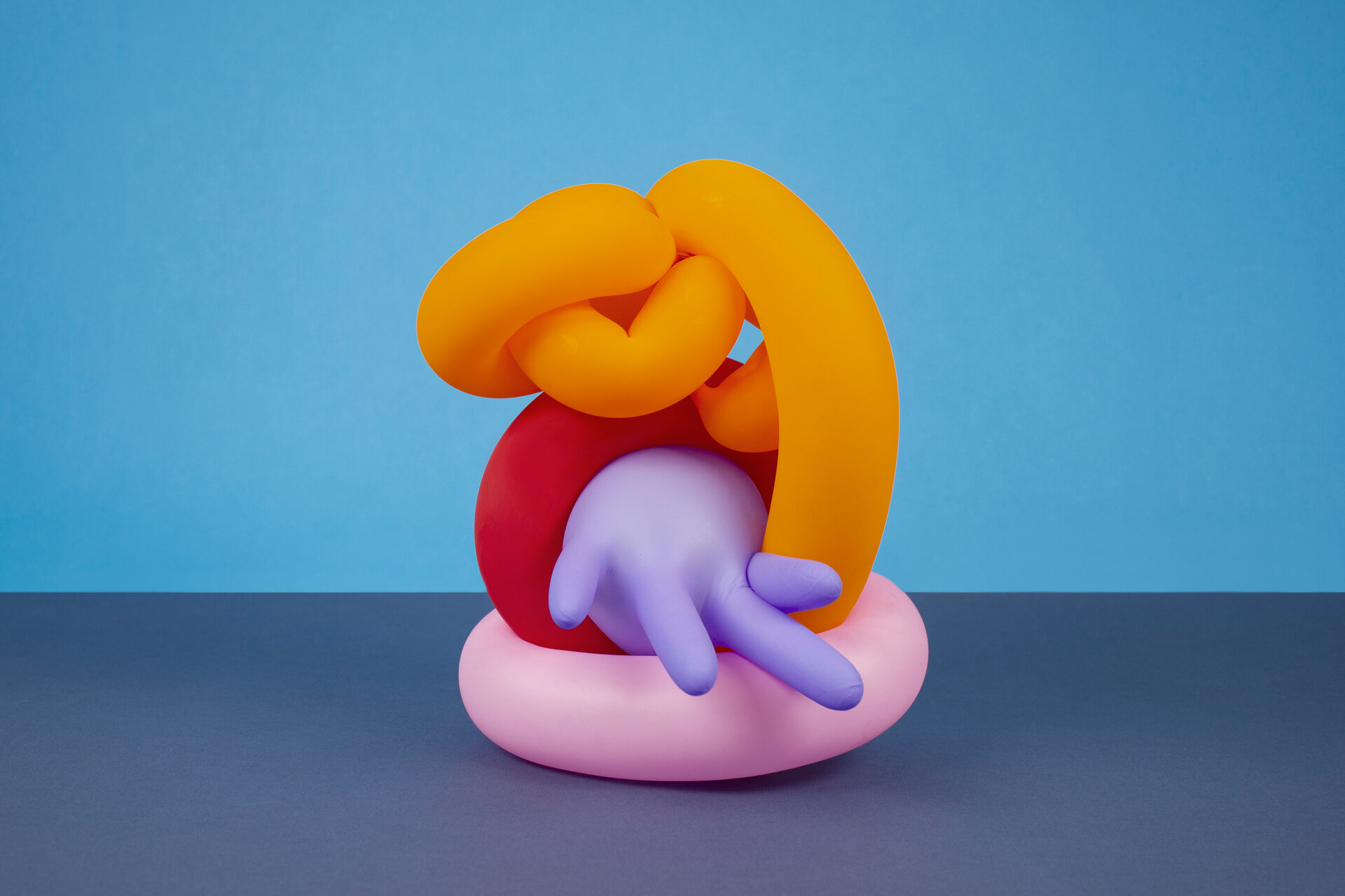 Vasty uses common balloons and rubber gloves to create interesting compositions through intertwining tube balloons and hand gloves. Like many of their other projects, they explore different compositions using the same techniques and materials. I love how the strong understanding of colors and how they can be paired to determine hierarchy. I also like the combination of different shapes and curves.that helps their pieces pop and stand out from the colored backgrounds that they choose. It’s especially interesting how they use the inflability of these objects to create different shades and shadows.