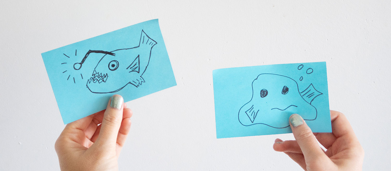 In the beginning of a workshop, everyone gets a blue post-it note and they get to draw a deep sea creature of their choice. You then instruct the participants of the rules: whenever a topic goes too deep, you hold up your deep sea creature for everyone to see. It’s a great way to neutralise any discussion or monologue that has gone a bit too far off the original intent of the workshop.