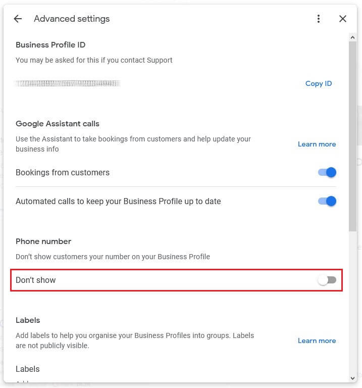 Hide phone numbers in your Google business profile