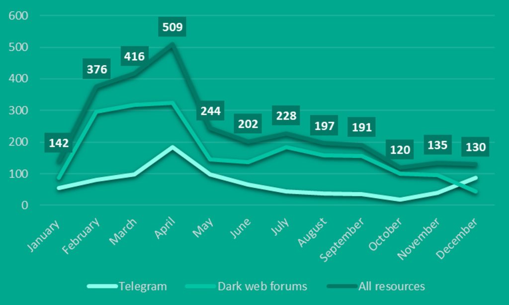 Nel corso del 2023, il team di Kaspersky Digital Footprint Intelligence ha portato alla luce quasi 3000 messaggi all’interno del dark web che discutevano l’impiego di ChatGPT per finalità illecite o che facevano riferimento a strumenti basati sull’intelligenza artificiale. E sebbene il picco di attività sia stato registrato a marzo, il fenomeno di queste discussioni non accenna a placarsi.