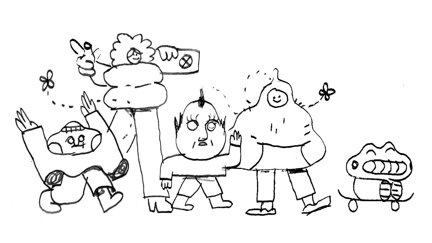 “My plan was to create a globby mess of characters all flopping and bouncing onwards together, each doing their own thing to the music. If you’ve ever seen the dance scene from the movie Hot Rod where all the characters are dancing completely uncoordinated outside a 7-Eleven or something, that’s the kinda mood I was going for. I did a lot of dancing in the mirror to get the movement down.