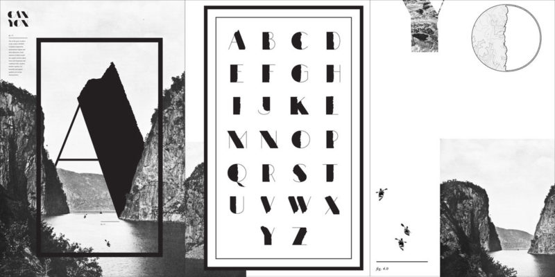 I liked the Canyon typeface and poster project. Although this typeface seems to have only a few practical applications, the development and use of typography in this poster is compelling. Man says “the typeface [was] inspired by mountainous regions and their silhouettes. Each character is built around the organic textures taken from rock formations and combined with a modern hairline typeface. The “Canyon” poster illustrates its dynamic qualities and the various ways it can be used.”