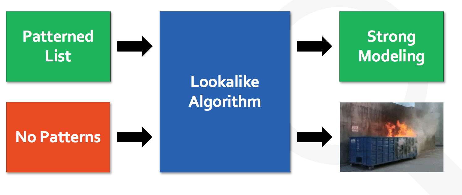 If you put in a good patterned list where people behave similarly, you’ll get a good lookalike audience back. If you put a list of just anyone who shows up, you have no idea what’s going to come out the other side.