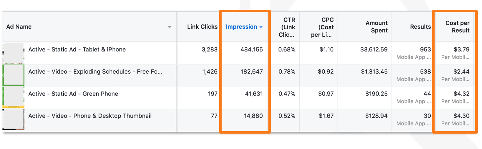 There are some challenges when testing ads on Facebook. You always end up with one ad with a ton of impressions and the rest with not nearly as many, and then it doesn’t really correlate with the cost per result. This is due to Facebook only caring about relevancy score.