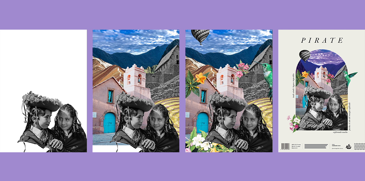My favourite brief was to use Photoshop/collage to create a cover for a non-conformist travel magazine, featuring unconventional destinations. Photoshop was the program I knew least about, and I had never done any kind of collage before. I remember feeling completely lost at the start of the brief, sitting surrounded by cut out pieces of paper thinking, I have absolutely no idea what I’m doing. I did a bunch more research, spent time etching out lots of images (probably not necessarily, in hindsight) but it slowly started making more sense. It felt like a pretty big win, and I ended up creating what is one of my favourite pieces so far.