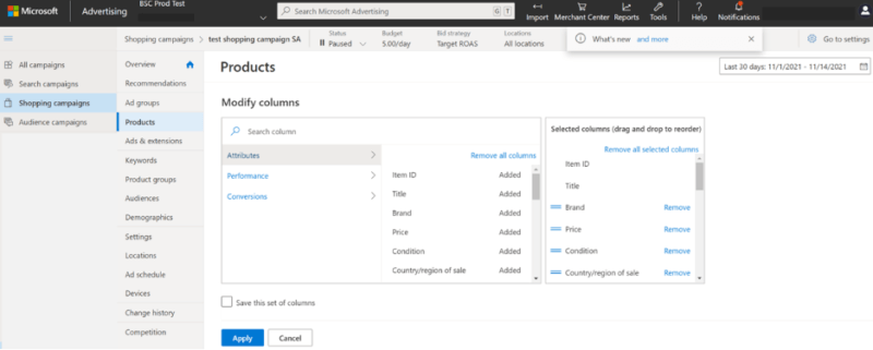 Microsoft Advertising Shopping campaigns reporting enhancements