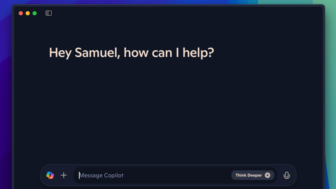 It was previously available briefly as a Mac app, sort of; for a short time, Microsoft’s iPad Copilot app could run on the Mac, but access on the Mac was quickly disabled. Mac users have been able to use a web-based interface for a while.