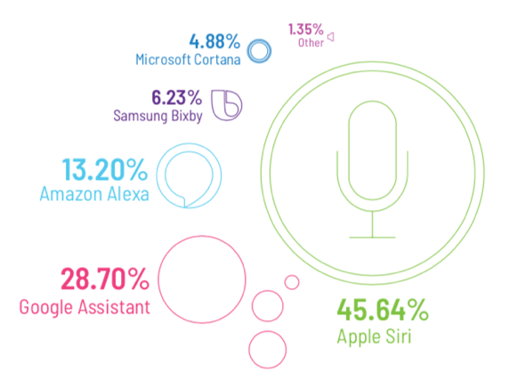 Since the survey referenced in the graphic above, Google has said its Assistant is available on a billion devices. According to Apple, Siri has more than 500 million active users around the world. There are fewer benefits to Google or Apple in providing deeper integrations for Cortana.
