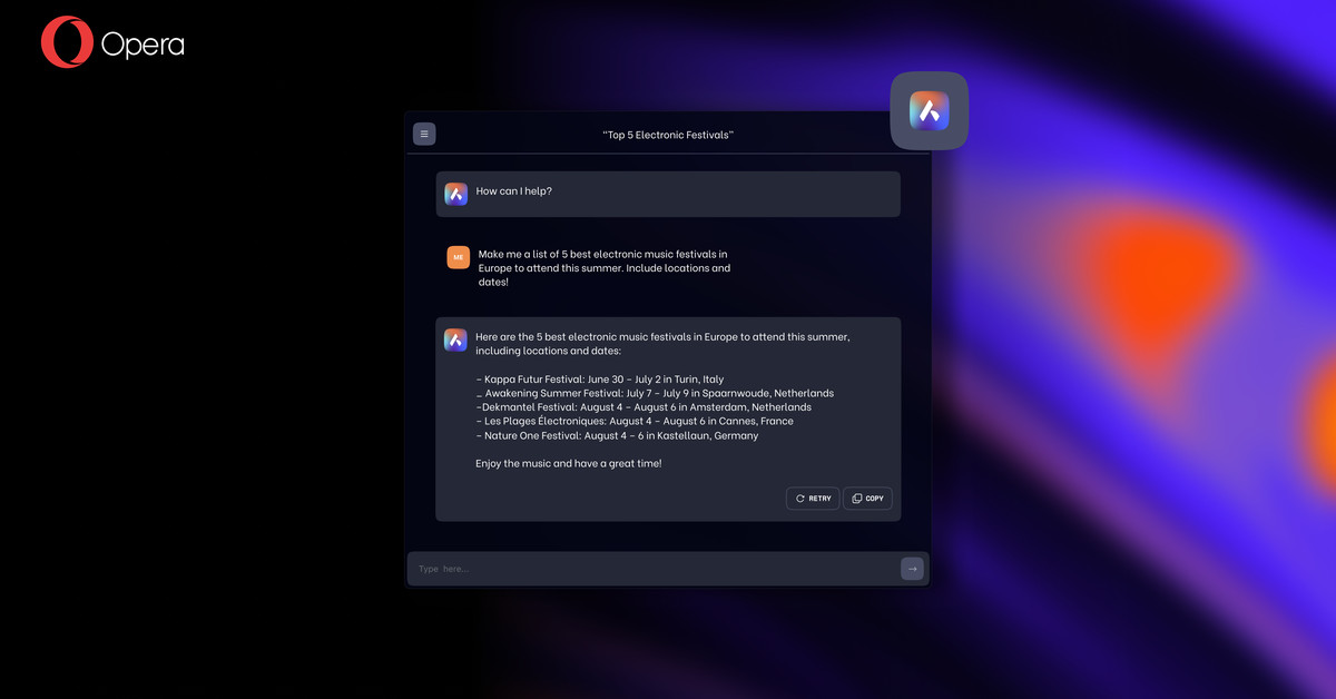 The built-in chatbot is powered by Opera’s Composer AI engine and connects to OpenAI’s GPT model. To use the tool, you need to sign up for an Opera account if you don’t have one already. Once that’s done, you can click the Aria icon on the left side of the screen to start chatting. While Opera first started testing the revamped version of the browser in May, now it’s available to everyone who downloads it.