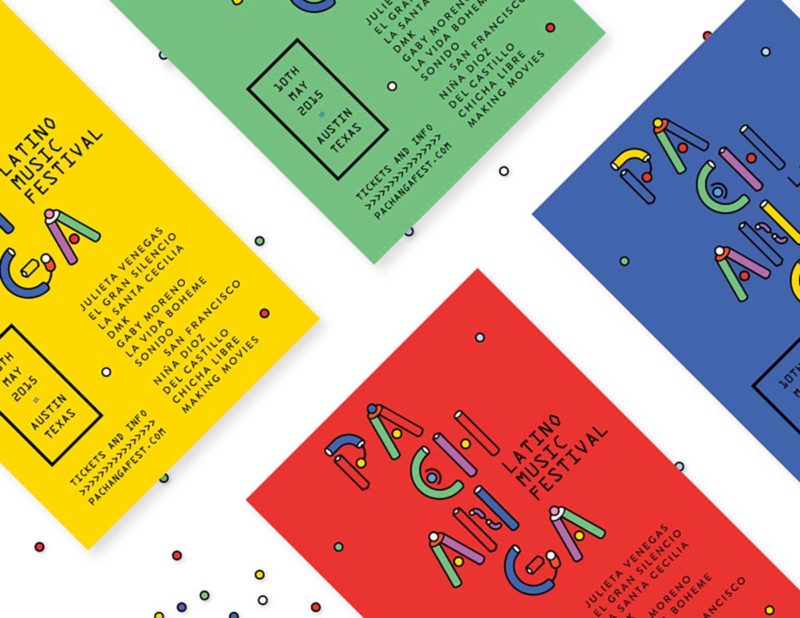 Mamba is a graphic communication studio from Mexico City. They favour simplicity and utilize geometry in their designs. For the Pachanga Festival of music, arts and food, Mamba created a poster series using playful type for the festival name and a typography-driven layout that is simple yet striking.