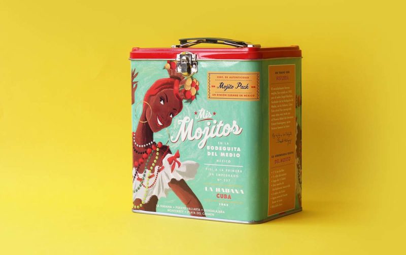 Cocoa is a Jalisco design studio that actively pushes for innovation and improving the visual perception of the brands they work with. The Mis Mojitos packaging conjures the aura of old-time Cuba through the choice of illustration, colours, and typography. The tin can makes for a great collectible item too!