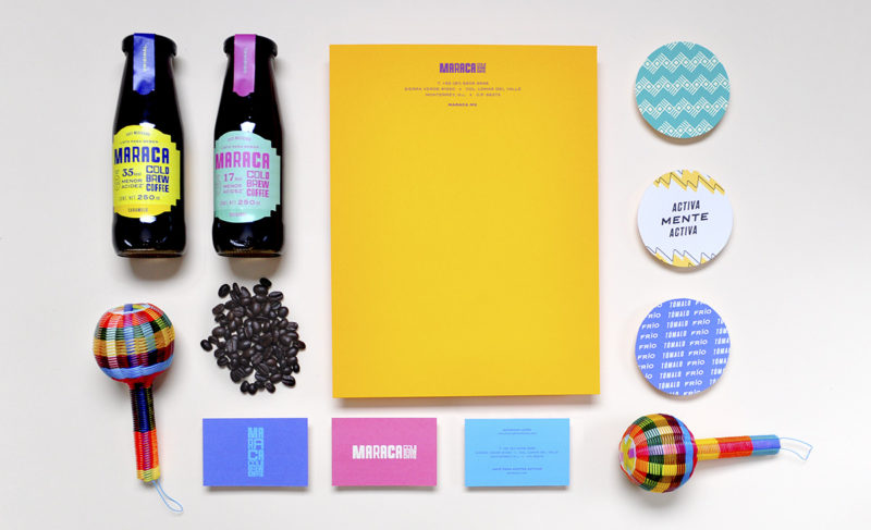 The Monterrey multidisciplinary agency Firmalt provides unique positioning for brands by using strong visual concepts. The studio created the naming, branding, packaging, and collateral for the Maraca brand—a cold brew for on-the-go coffee drinkers. The identity exudes an active and fun energy by using unique colour pairings for contrast, playful illustrations, and rough wordmark variations.