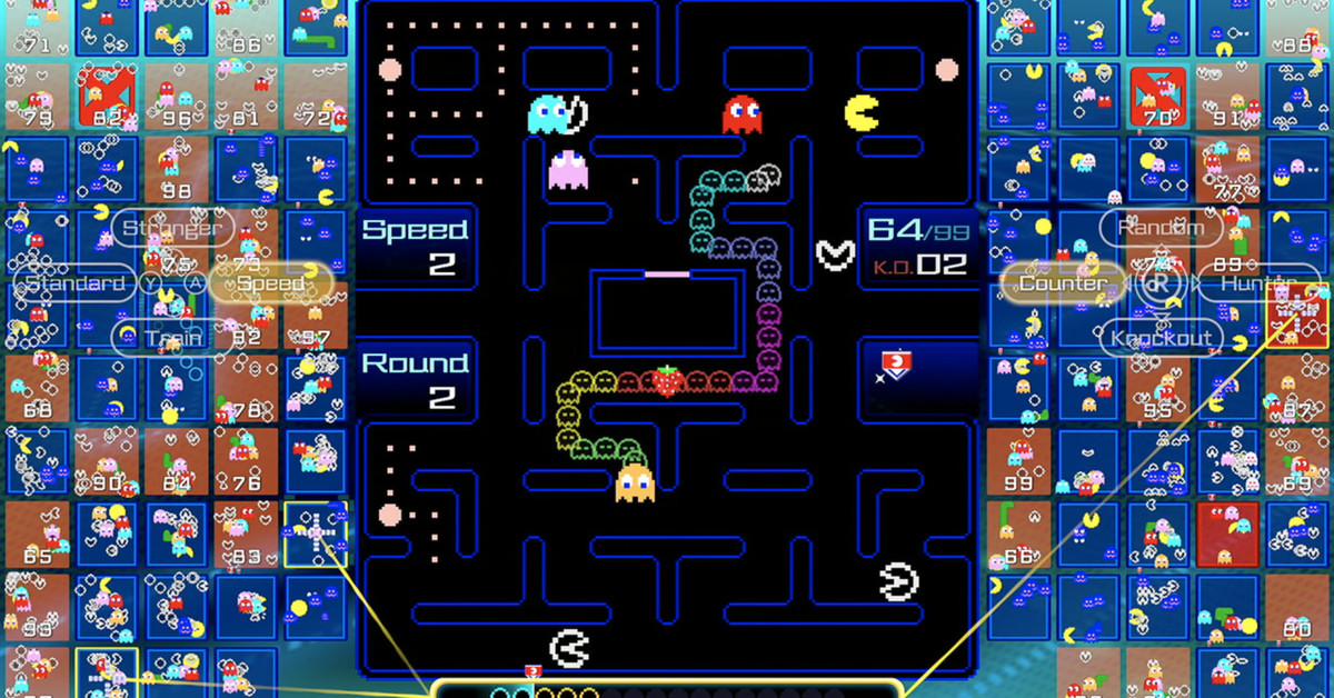 The game looks similar to the classic arcade original Pac-Man, but you can make it more difficult for opponents by munching on power pellets, eating ghosts, and sending “Jammer Pac-Man” over to their screens. There are eight different preset strategies you can use to screw with other players, for example by speeding up their game.