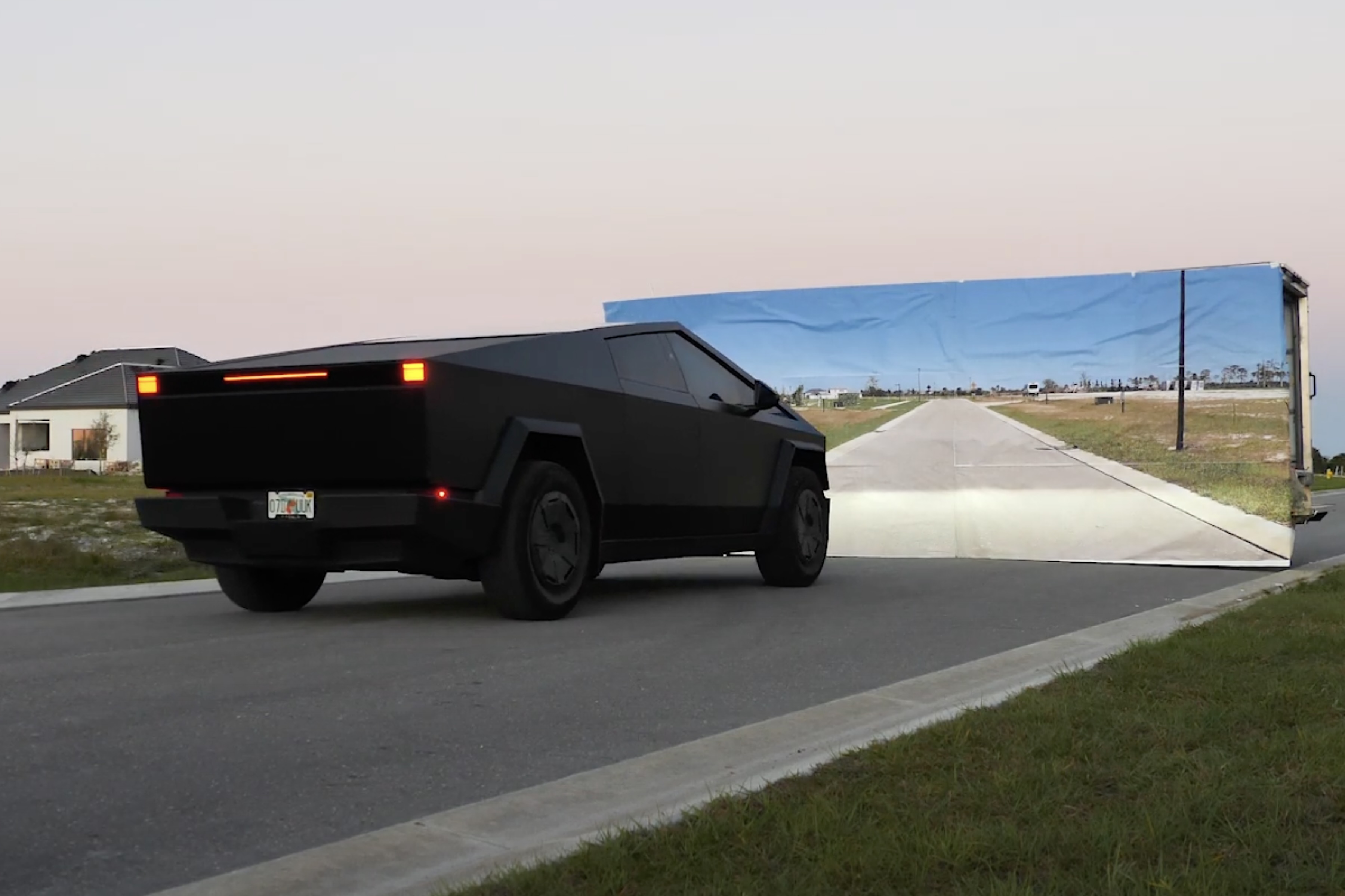 In Paul’s video, the Tesla Model Y with confirmed FSD (in this case, version 12.5.4.2) didn’t fare better than Rober’s — he had to manually stop the vehicle before it crashed into the fake wall that, to my human eyes, doesn’t look quite as convincing. Not all is lost for Tesla, though, as Paul’s test of the Cybertruck with FSD version 13.2.8 had a better ending. It detected the wall and slowed down to a complete stop.