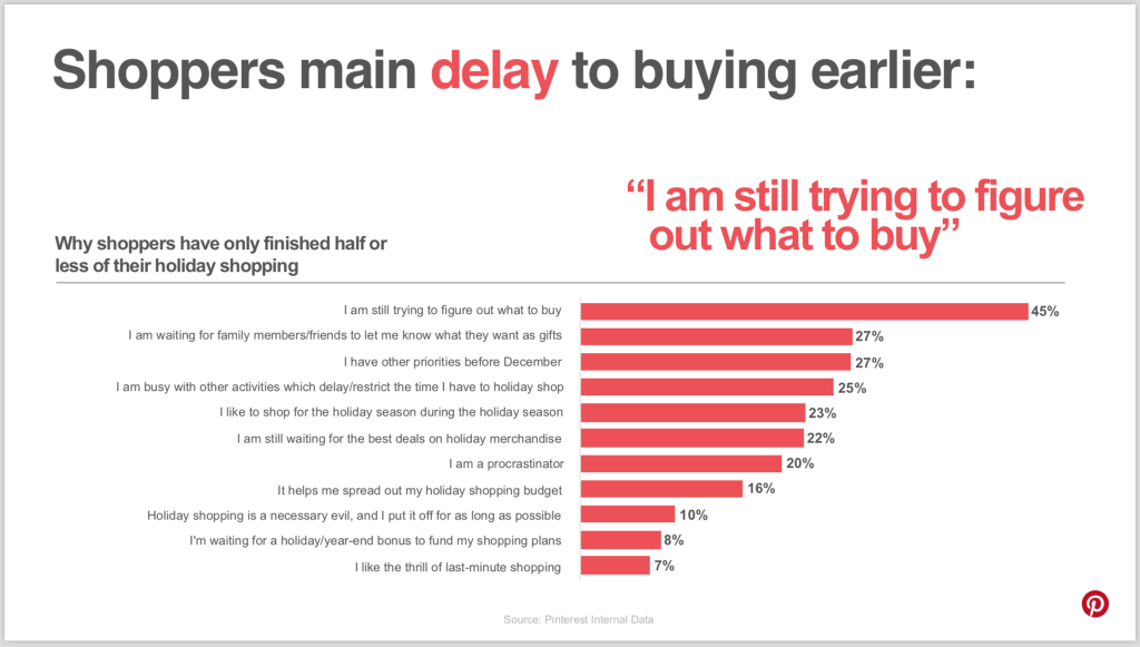 Most people start pinning, searching, saving 12 weeks before an event. That’s great for a marketer. You can drive interest incrementally over time.