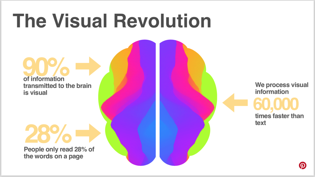 The visual revolution. 50% of the brain is dedicated to understanding visual information.