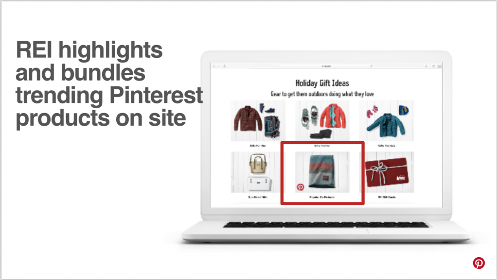 Example of REI: They saw that normal human beings shop in bundles. If they’re going camping, they don’t need ten jackets and ten tents. They need a bundle of assorted things. Thus, they started highlighting and bundling trending Pinterest products on their own site.