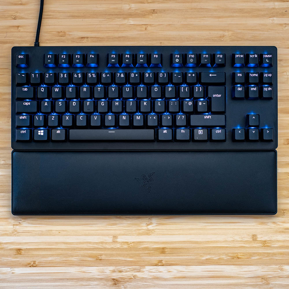 I’ve been testing two of the variants for this review, a Razer Huntsman V2 with clicky switches and a Razer Huntsman V2 Tenkeyless (aka TKL) with linear switches, both with a UK layout (US is also available). The latter comes without a numpad, volume wheel, or media keys. But the core functionality of both keyboards are identical, including their switch options, polling rate, and construction, so it makes sense to talk about them as a pair.